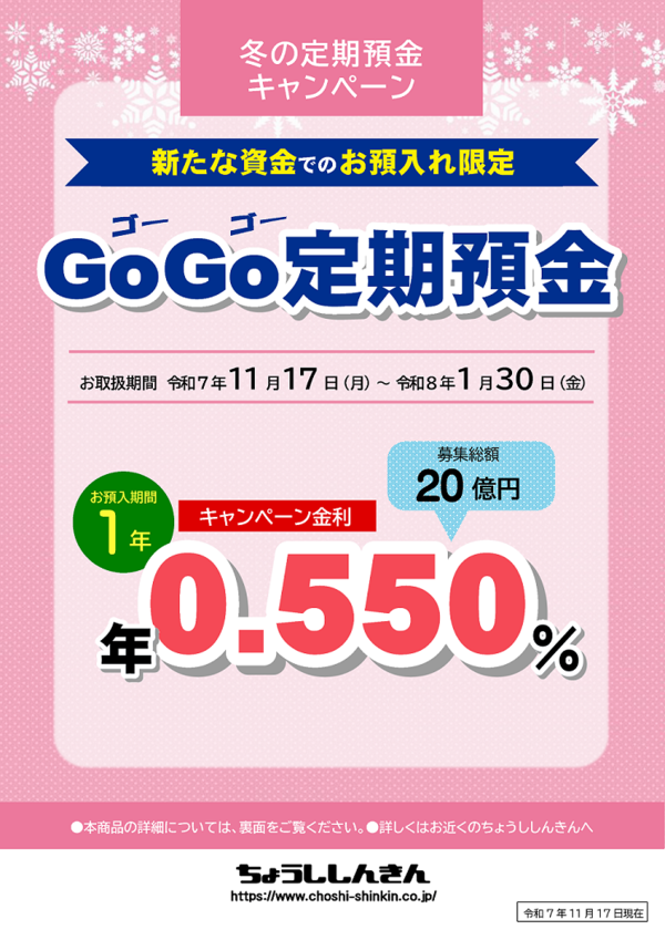 - 本キャンペーンの開始以降の他金融機関からの振込、現金によるお預入れ等、当金庫に新たにお預入れいただく資金が対象となります。